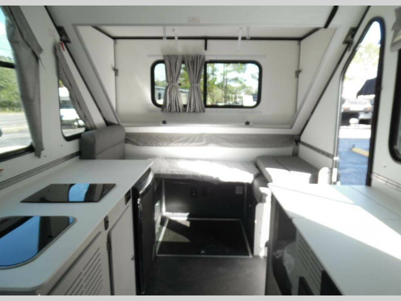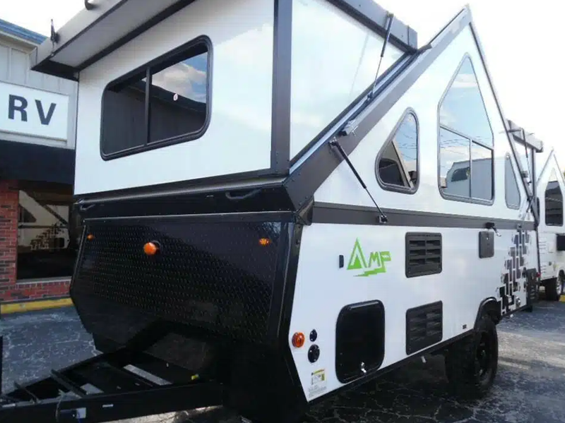 Durable construction includes a robotically welded, E-coated frame and aluminum framed cabinetry plus furniture structure with SIMONA BOATBOARD panels for added durability and water resistance. This camper is highly compatible so you could tow it with an average-size car and conveniently store in your garage. What's more, the Amp has a 30-second set up time, so you'll be ready to camp in record speed!
