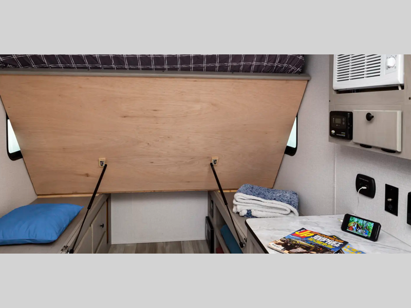 You'll enjoy the ROK Camping Made Easy Package with an outside shower, exterior LED lighting, and 7-way hooks. There are also tinted windows, a 12V power fan, plus 12V outlets and a USB charging port to keep your electronics charged. Each model also includes an ROK Kitchen Package that will allow you to cook and store meals each day!