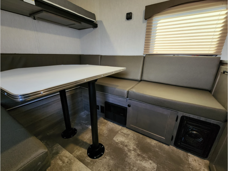 If you aren't already convinced to check out the Sunray, then the features will do the trick. The construction consists of a fully walkable 3/8" roof decking, wood studs built 16" on center, spring-leaf Dexter axles, and a powder-coated steel chassis. For comfort, you'll find an air conditioner and furnace, a 6-gallon DSI gas water heater, a stove, sink cover, a refrigerator, and microwave. You'll enjoy using the outside shower to rinse off muddy boots, sticky hands, or outdoor equipment, and the portable Bluetooth speaker will entertain you for years and years.